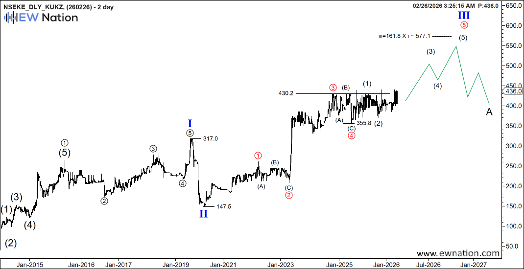 We are looking for a wave 5 completion, we anticipate a short run once 430 key level is broken for wave 5. Thereafter, wave 4 deline setting stage for wave 5.
