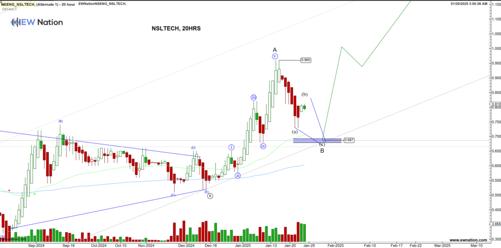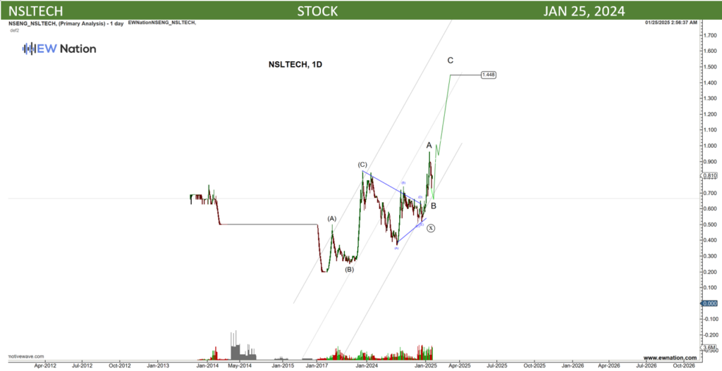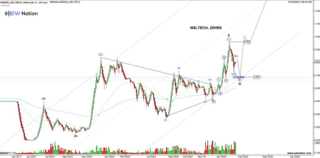 From a technical perspective, NSLTECH’s stock has been volatile. The share price peaked at ₦0.96 in early 2025 but has since undergone a correction. Current support stands at ₦0.68, indicating a tight trading range. Analysts suggest that a break above or below these levels could determine the next significant movement. Technical indicators, such as the Elliott Wave Chart, point to an unfolding double zigzag pattern, suggesting a potential near-term upswing with a possible A-wave to the upside.