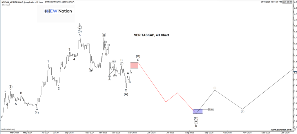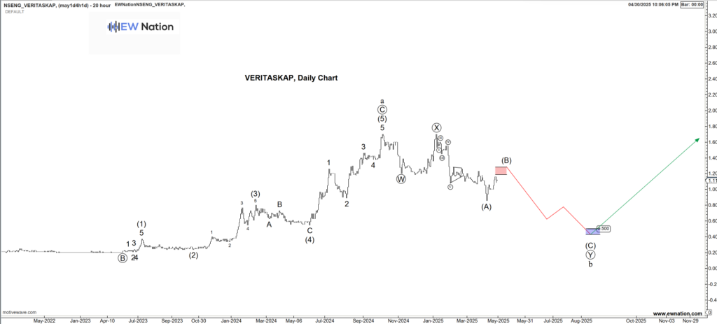 The Elliot wave chart above shows that Veritaskap is in a complex correction for a wave B. The sell off is unfolding a a W-X-Y correction with the X-Y Wave usually dividing in an A-B-C.